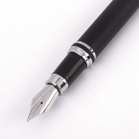 В набор ручек бизнес-класса входят: стильные модели перьевой и шариковой ручек с корпусом из металла черного цвета и серебристыми деталями. Синий цвет чернил. Диаметр пишущего узла шариковой ручки 1,0 мм создает ровню линию письма, равную 0,5 мм. Диаметр пишущего узла перьевой ручки 0,5 мм создает ровню линию письма, равную 0,25 мм. Поставляется в фирменной упаковке.