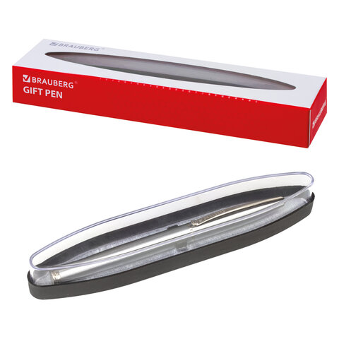 Ручка подарочная шариковая BRAUBERG "Allegro", СИНЯЯ, корпус черный с хромированными деталями, линия письма 0,5 мм, 143491