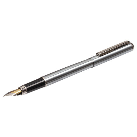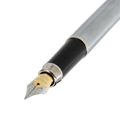 Стильная модель перьевой ручки с корпусом из металла серебристого цвета и хромированными деталями. Синий цвет чернил, иридиевое перо украшено гравировкой. Диаметр пишущего узла 0,5 мм. Тип пера M (Medium) – средняя ширина линии. Размер картриджа – 39 мм.