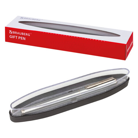 Ручка подарочная шариковая BRAUBERG "Vocale", СИНЯЯ, корпус серебристый с хромированными деталями, линия письма 0,5 мм, 143490