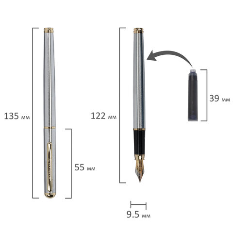 BRAUBERG "MAESTRO" – это стильная и удобная перьевая ручка, которая не только порадует своего владельца, но и станет отличным подарком. Картридж с чернилами находится внутри корпуса.