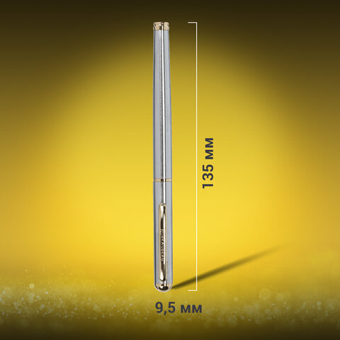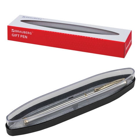 Ручка подарочная шариковая BRAUBERG "Vocale", СИНЯЯ, корпус серебристый с хромированными деталями, линия письма 0,5 мм, 143490
