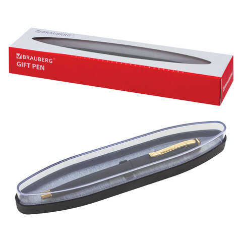 Ручка подарочная шариковая BRAUBERG "Allegro", СИНЯЯ, корпус черный с хромированными деталями, линия письма 0,5 мм, 143491