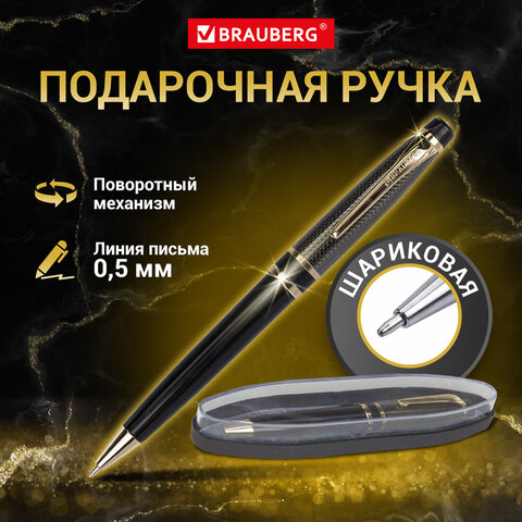 Ручка подарочная шариковая BRAUBERG "Allegro", СИНЯЯ, корпус черный с хромированными деталями, линия письма 0,5 мм, 143491