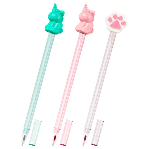 Ручка с топпером шариковая автоматическая FUNSTER "CAT PAW", СИНЯЯ, ассорти, пишущий узел 0,7 мм, линия письма 0,35 мм, 144376