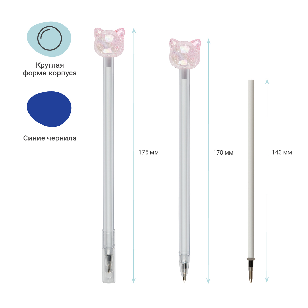 Шариковая ручка MESHU Crystal Kitten станет атрибутом отличного настроения на работе или учёбе. Диаметр пишущего узла – 0,7 мм. Ручка прекрасно подойдёт для мягкого и быстрого письма. Толщина линии письма – 0, 5 мм, а длина письма может достигать от 450 до 500 метров. Ручка обладает необычным дизайном: круглый корпус белого цвета дополняет милая игрушка-кристальный котик. У ручки есть пластиковый колпачок, который гарантирует, что изделие не повредится в сумке и не оставит следов на посторонних предметах. Благодаря чернилам синего цвета ручку можно ежедневно использовать в работе или учёбе. Изделие предусматривает возможность замены стержня длиной 126 мм. Ручки упакованы в картонную коробку-дисплей.