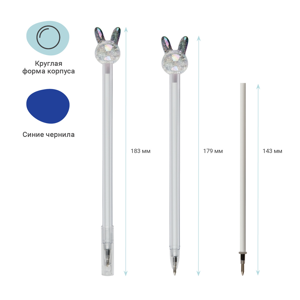 Шариковая ручка MESHU Crystal Rabbit станет атрибутом отличного настроения на работе или учёбе. Диаметр пишущего узла – 0,7 мм. Ручка прекрасно подойдёт для мягкого и быстрого письма. Толщина линии письма – 0, 5 мм, а длина письма может достигать от 450 до 500 метров. Ручка обладает необычным дизайном: круглый корпус белого цвета дополняет милая игрушка-кристальный зайчик. У ручки есть пластиковый колпачок, который гарантирует, что изделие не повредится в сумке и не оставит следов на посторонних предметах. Благодаря чернилам синего цвета ручку можно ежедневно использовать в работе или учёбе. Изделие предусматривает возможность замены стержня длиной 126 мм. Ручки упакованы в картонную коробку-дисплей.