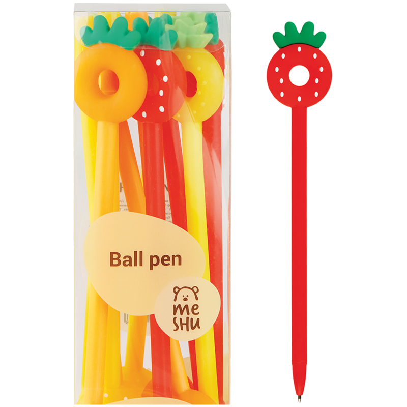 Шариковая ручка MESHU станет атрибутом отличного настроения на работе или учёбе. Стильный корпус ручки дополняет милая игрушка. Диаметр пишущего узла: 0,7 мм. Ручка подойдёт для мягкого и быстрого письма. Ручка MESHU не имеет кнопочного механизма, но обладает пластиковым колпачком. Это говорит о надёжности и безопасности изделия – стержень не повредится в сумке и не оставит следов на посторонних предметах. Благодаря чернилам синего цвета ручку можно использовать в работе или учёбе на постоянной основе. Чернила сменные, что говорит о долговечности изделия. <br/>• Цвет: синий;<br/>• Тип стирания: при нагревании; <br/>• Диаметр пишущего узла: 0,7 мм;<br/>• Форма корпуса: круглая.