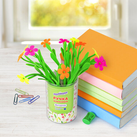 Шариковая ручка ЮНЛАНДИЯ "Цветочек" с мягким силиконовым корпусом.