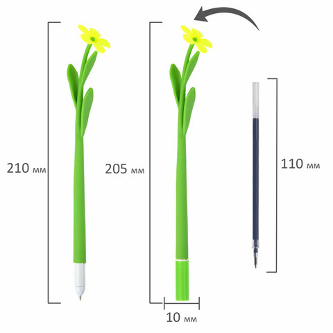Шариковая ручка серии FUNNY YUMMY с мягким силиконовым корпусом и оригинальным дизайном в виде цветочка. Благодаря привлекательному дизайну ее не захочется выпускать из рук. Диаметр стандартного пишущего узла, равный 0,7 мм, создает линию письма, равную 0,35 мм. Длина сменного стержня составляет 110 мм. Цвет чернил - синий. Цвет корпуса - ассорти.