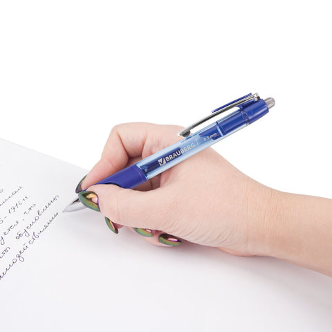 Автоматическая ручка BRAUBERG "Officer" с резиновым держателем обеспечивает комфотное и качественное письмо за счет использования гелевых чернил.