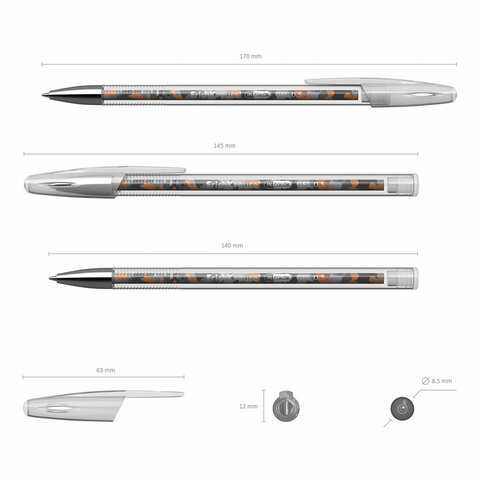 Ручка имеет прозрачный круглый корпус с удобной профилированной грип-зоной и вентилируемый колпачок. 5-канальный пишущий узел с диаметром шарика 0.5 мм в сочетании с гелевыми чернилами обеспечивает точное и быстрое письмо без усилий. Длина непрерывной линии составляет 600 м при толщине 0.4 мм, что является высоким показателем в своей категории.