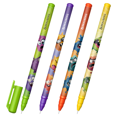 Ручка гелевая, кросс-серия "МОНСТРИКИ", BRAUBERG, синяя, ассорти, игольчатый наконечник 0,5мм,144483
