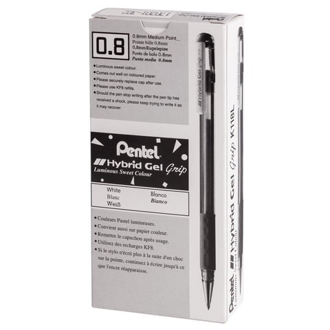 Гелевая ручка "Hybrid Gel Grip" от бренда PENTEL поставляется в круглом прозрачном пластиковом корпусе с деталями в цвет чернил.