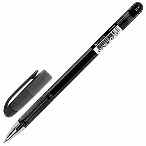 Ручка гелевая с грипом BRAUBERG "BLACK VIVID", ЧЕРНАЯ, корпус SOFT-TOUCH, пишущий узел 0,5 мм, линия письма 0,35 мм, 144541