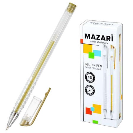 Ручка гелевая " Mazari " Autumn золотая 0,8мм рифленый держатель, металлизированный наконечник, стержень 130мм, прозрачный пластиковый корпус, картонная упаковка
