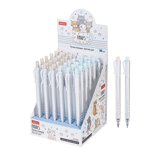Ручка гелевая " Hatber " Paws/Лапки черная 0,5мм, пластиковый корпус, картонный дисплей