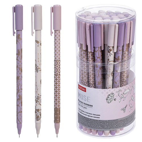 Ручка гелевая " Hatber " Muse черная 0,5мм, игольчатый пишущий узел, чернила fast dry, цветной пластиковый корпус, пластиковая туба