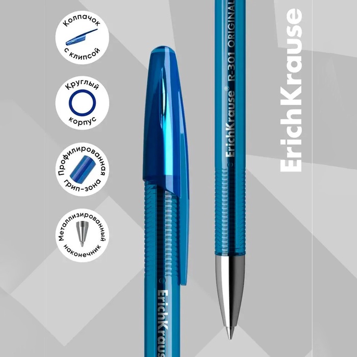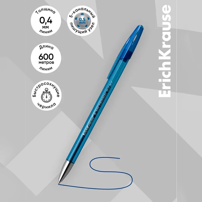 Ручка гелевая синяя паста 0.7 мм с колпачком «Ручки отличника»