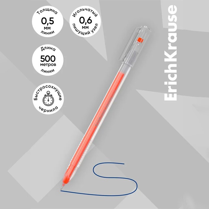 Ручка гелевая 0,5мм красная, бесстержневая, иголчатый пишущий узел