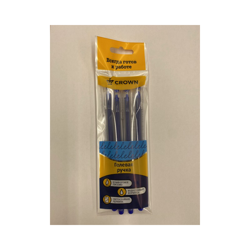 УЦЕНКА - Ручка гелевая Crown "Multi Jell" синяя, 0,4мм, игольчатый стержень, 4 шт., пакет с европодвесом