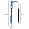 Гелевая автоматическая ручка имеет круглый корпус. Оснащена кнопочным механизмом подачи стержня. Детали корпуса выполнены в цвет синих чернил. Резиновый эргономичный упор для пальцев предотвращает скольжение ручки при письме. Сменный стержень длиной 110 мм со стандартным наконечником позволит использовать ручку максимально долго. Пишущий узел диаметром 0,5 мм создает линию письма, равную 0,35 мм.