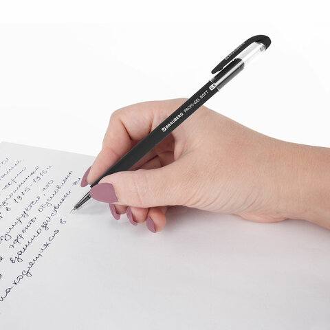 Гелевая ручка BRAUBERG "Profi-Gel SOFT" с покрытием soft-touch приятна на ощупь и не скользит в руке, обеспечивая мягкое и комфортное письмо.