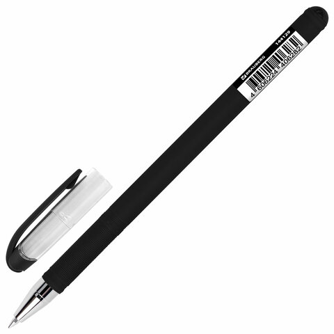 Ручка гелевая с грипом BRAUBERG "BLACK VIVID", ЧЕРНАЯ, корпус SOFT-TOUCH, пишущий узел 0,5 мм, линия письма 0,35 мм, 144541