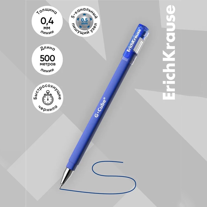 Ручка гелевая синяя паста 0.7 мм с колпачком «Ручки отличника»