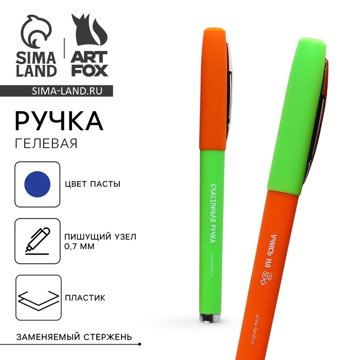 Ручка гелевая синяя паста 0.7 мм с колпачком «Ручки отличника»