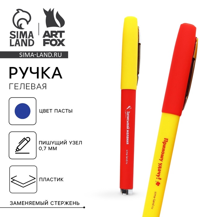 Ручка гелевая синяя паста 0.7 мм с колпачком «На удачу!»