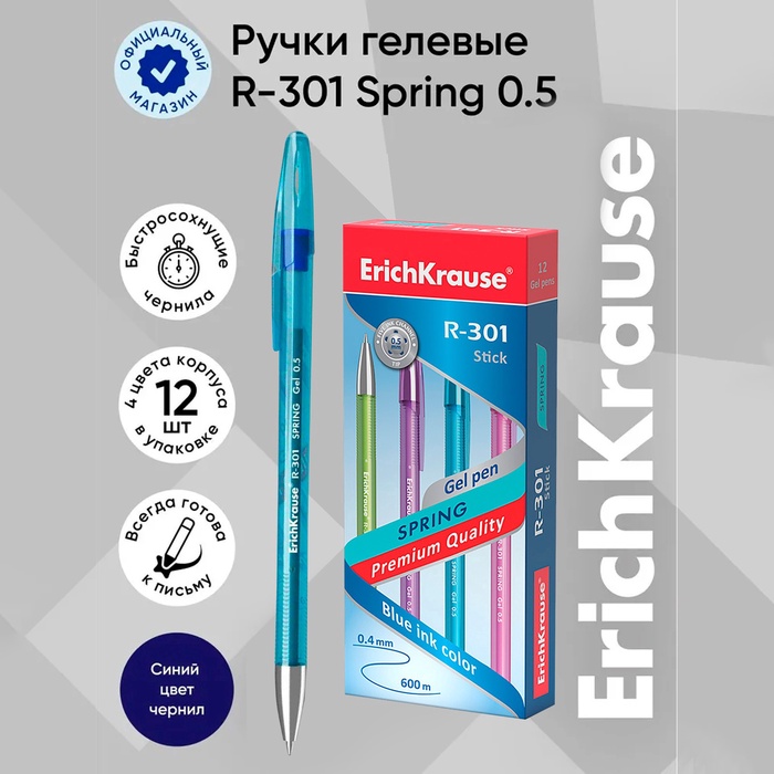 Ручка гелевая синяя паста 0.7 мм с колпачком «Ручки отличника»