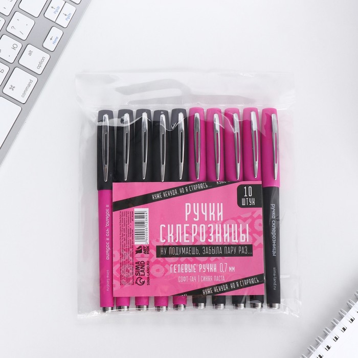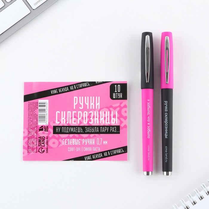 Ручка гелевая синяя со стираемыми чернилами Mazari "CATODREAM" + 9 стержней в комплекте, игольчатый пишущий узел 0,5 мм, термочувствительные чернила МИКС