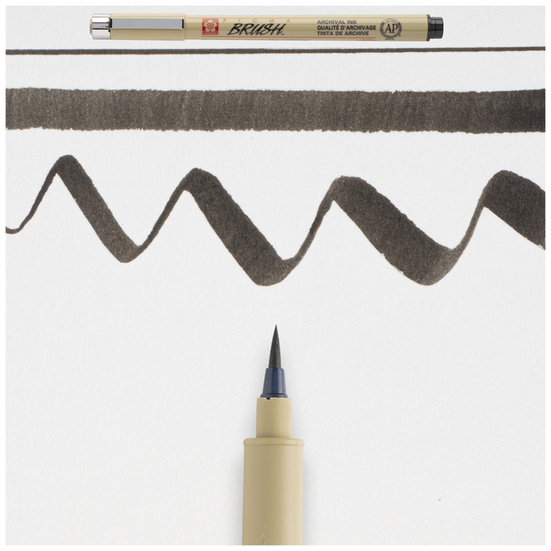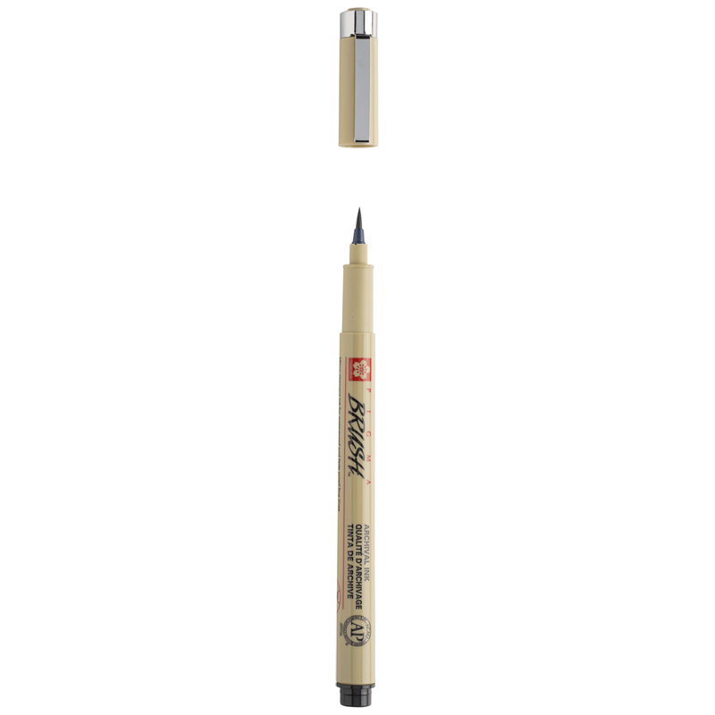 Капиллярная ручка Sakura Pigma Brush. Запатентованные бескислотные архивные светостойкие чернила. Быстро сохнет. Чернила не смазываются и не протекают на большинстве типов бумаги. Наконечник-кисточка обладает исключительной гибкостью. Не высыхает без колпачка. Количество цветов: 10 Размер одной ручки: 136мм*13мм*13мм. Масса одной ручки: 9 грамм. - В ручках серии Pigma используются архивные чернила Pigma Ink: светостойкие (не выцветают), химически стабильные, на водной основе и пигментах. После высыхания устойчивы к воздействию воды (не расплываются при попадании на воды на бумагу), не пачкаются, не смазываются и не проступают на оборотную сторону листа (для большинства видов бумаги)
