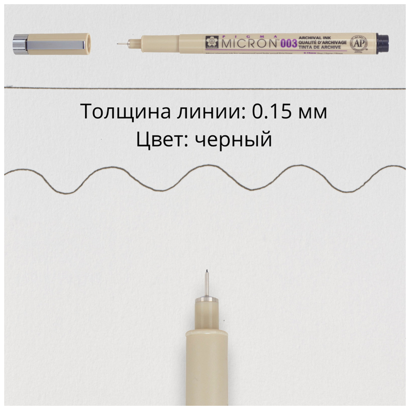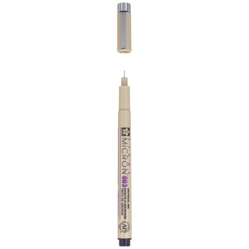 Ручка капиллярная Sakura Pigma Micron 003 (пишущий узел 0.15мм) в ассортименте - Размер одной ручки: 136мм*14мм*14мм - Масса одной ручки: 10 грамм - В ручках серии Pigma используются архивные чернила Pigma Ink: светостойкие (не выцветают), химически стабильные, на водной основе и пигментах. После высыхания устойчивы к воздействию воды (не расплываются при попадании на воды на бумагу), не пачкаются, не смазываются и не проступают на оборотную сторону листа (для большинства видов бумаги) - Применение Sakura Pigma Micron в творчестве: - Смешанные техники: используют совместно с акварелью, акрилом, карандашами и прочими художественными материалами - Скетчинг - Иллюстрация и мультипликация - Комиксы и манга - Различные виды хобби: скрапбукинг, создание авторских открыток, пригласительных и штампов (Rubber Stamping), роспись кукол, квилтинг, и другие - Медитативная техника рисования Zentangle - Декоративная роспись по ткани (предпочтительно, хлопок, ткань с рисунком не рекомендуется стирать) - Применение Sakura Pigma Micron в работе и повседневной жизни: - Ежедневное письмо: ведение ежедневников, дневников, журналов, запись лекций - Подпись официальных документов - Черчение - Технический рисунок - Ручки Sakura Pigma Micron не токсичны по стандартам ACMI (Art & Creative Materials Institute), организации, специализирующейся на проверке товаров для художников и хобби на предмет безопасности и токсичности - Не применять в косметических целях (не рисовать на коже) - В ручках серии Pigma используются архивные чернила Pigma Ink: светостойкие (не выцветают), химически стабильные, на водной основе и пигментах. После высыхания устойчивы к воздействию воды (не расплываются при попадании на воды на бумагу), не пачкаются, не смазываются и не проступают на оборотную сторону листа (для большинства видов бумаги)