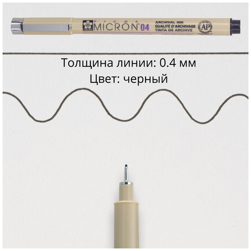 Ручка капиллярная Sakura Pigma Micron 04 (пишущий узел 0.4мм) в ассортименте - Размер одной ручки: 136мм*14мм*14мм - Масса одной ручки: 10 грамм - В ручках серии Pigma используются архивные чернила Pigma Ink: светостойкие (не выцветают), химически стабильные, на водной основе и пигментах. После высыхания устойчивы к воздействию воды (не расплываются при попадании на воды на бумагу), не пачкаются, не смазываются и не проступают на оборотную сторону листа (для большинства видов бумаги) - Применение Sakura Pigma Micron в творчестве: - Смешанные техники: используют совместно с акварелью, акрилом, карандашами и прочими художественными материалами - Скетчинг - Иллюстрация и мультипликация - Комиксы и манга - Различные виды хобби: скрапбукинг, создание авторских открыток, пригласительных и штампов (Rubber Stamping), роспись кукол, квилтинг, и другие - Медитативная техника рисования Zentangle - Декоративная роспись по ткани (предпочтительно, хлопок, ткань с рисунком не рекомендуется стирать) - Применение Sakura Pigma Micron в работе и повседневной жизни: - Ежедневное письмо: ведение ежедневников, дневников, журналов, запись лекций - Подпись официальных документов - Черчение - Технический рисунок - Ручки Sakura Pigma Micron не токсичны по стандартам ACMI (Art & Creative Materials Institute), организации, специализирующейся на проверке товаров для художников и хобби на предмет безопасности и токсичности - Не применять в косметических целях (не рисовать на коже) - В ручках серии Pigma используются архивные чернила Pigma Ink: светостойкие (не выцветают), химически стабильные, на водной основе и пигментах. После высыхания устойчивы к воздействию воды (не расплываются при попадании на воды на бумагу), не пачкаются, не смазываются и не проступают на оборотную сторону листа (для большинства видов бумаги)