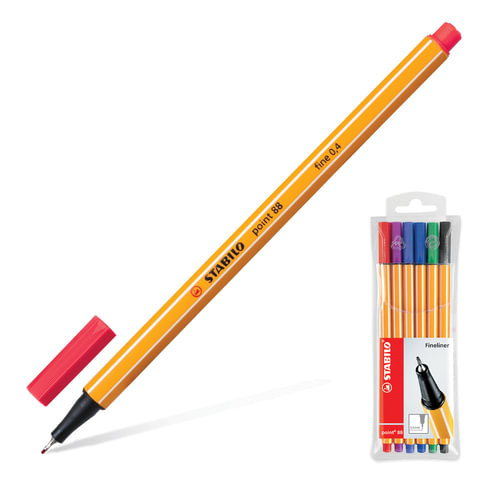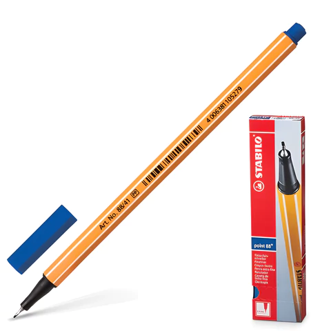 Ручка капиллярная (линер) STABILO "Point", СИНЯЯ, корпус оранжевый, линия письма 0,4 мм, 88/41
