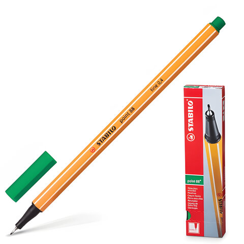 Ручка капиллярная (линер) STABILO "Point", ЗЕЛЕНАЯ, корпус оранжевый, линия письма 0,4 мм, 88/36