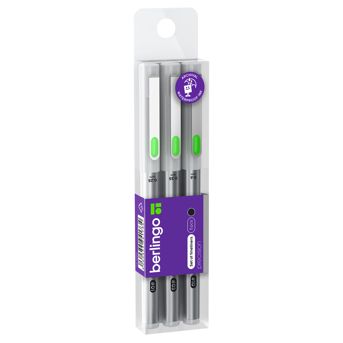 УЦЕНКА - Набор линеров пигментных Berlingo "Precision" черные, 3шт., 0,25/0,35/0,6мм, европодвес