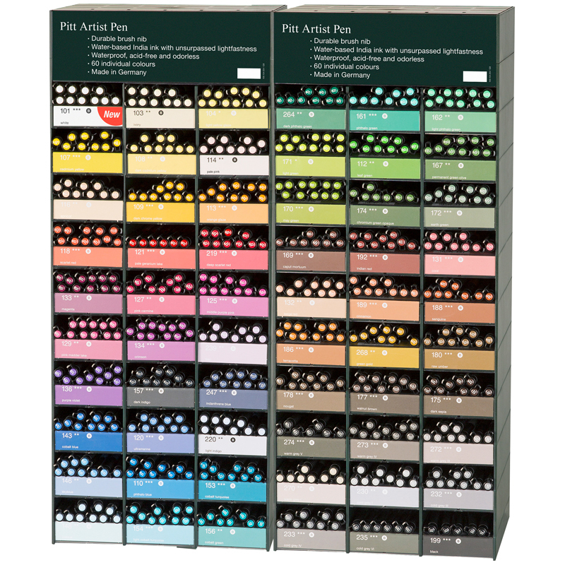 Дисплей капиллярных ручек Faber-Castell "Pitt Artist Pen Brush" из 2-х модулей с наполнением.