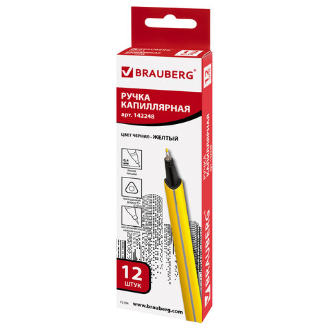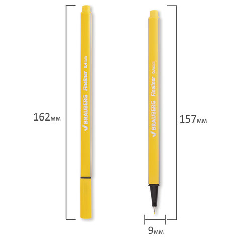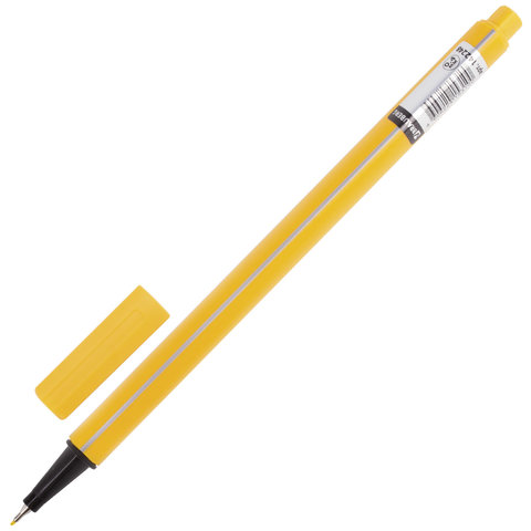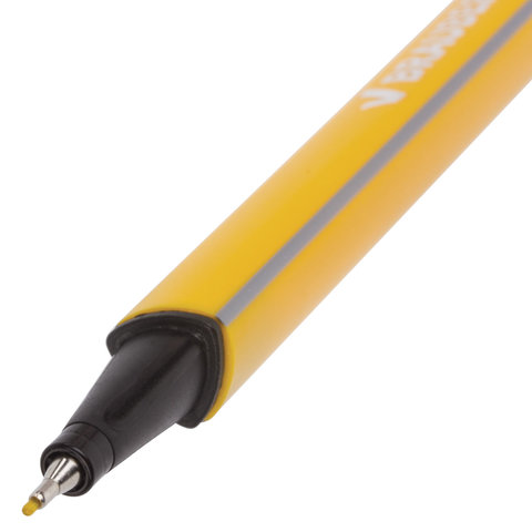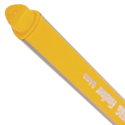 Ручка капилярная желтого цвета имеет трехгранную форму корпуса, диаметр которого 9 мм. Благодаря такой форме корпуса изделие удобно располагать в руке. Супертонкий износостойкий металлический наконечник 0,4 мм идеально подходит для создания точных и аккуратных линий. Цвет корпуса и колпачка соответствует цвету желтых чернил.