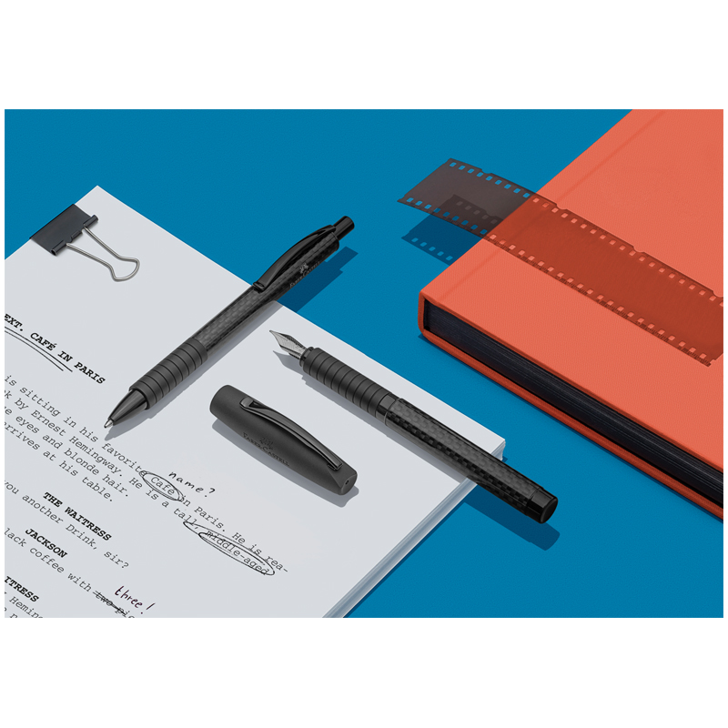Перьевая ручка Essentio Carbon от легендарного немецкого производителя Faber-Castell имеет элегантный корпус из уникального материала карбона, сочетающего прочность металла и лёгкость пластика. Приятно смотреть, удобно держать и комфортно писать - таковы ключевые свойства письменных принадлежностей Essentio. Эргономичная зона захвата контрастного цвета с покрытием softtouch красиво сочетается с хромированным металлом элементов корпуса. Перьевая ручка имеет прочное перо из нержавеющей стали и подпружиненный металлический клип, который позволит прикрепить изделие к ежедневнику. Товар станет желанным подарком для ценителей качественных и элегантных пишущих принадлежностей. Диаметр пишущего узла составляет: F=0,6 мм (тонкое). Товар представлен в картонной коробке. Ручка оснащена системой картридж/конвертер, что позволяет подобрать картриджи разных цветов отдельно.<br/>Картридж с синими чернилами в комплекте.<br/>• Цвет чернил: синий;<br/>• Диаметр пишущего узла: 0,6 мм;<br/>• Цвет корпуса: чёрный;<br/>• Футляр: картонная коробка;<br/>• Расходный материал: стандартный картридж с чернилами.