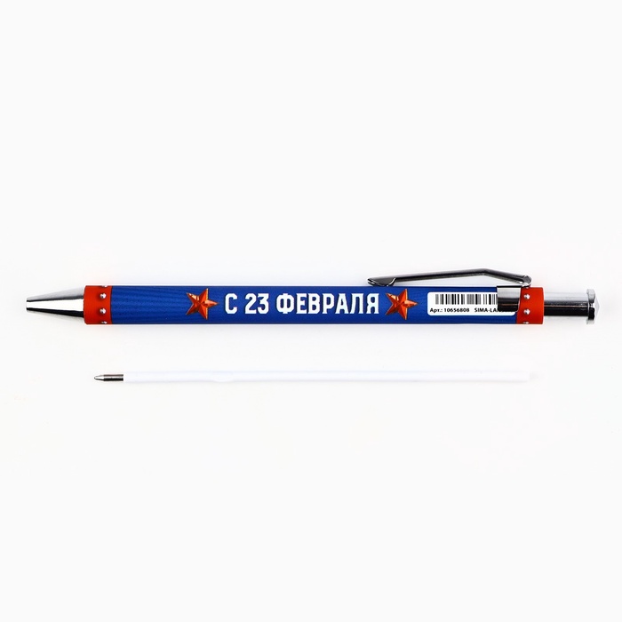 Ручка автоматическая шариковая "С 23 февраля", пластик, 0.7 мм, синяя паста