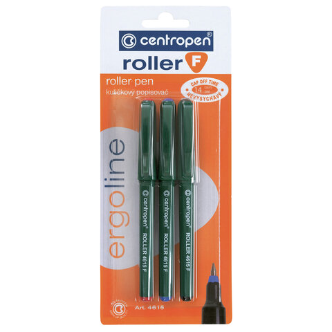 Ручки-роллеры 3 ЦВЕТА CENTROPEN, корпус зеленый, узел 0,5 мм, линия письма 0,3 мм, 4615/3, 3 4615 0302