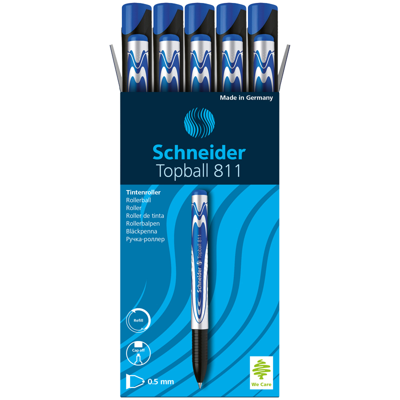 Ручка-роллер Schneider TopBall 811 с круглым стильным корпусом и пластиковым клипом. Диаметр пишущего узла ручки составляет 0,7 мм, толщина линии письма – 0,5 мм. Длина письма - 1000 метров. Удобный чернильный роллер с возможностью менять стержень. Цвет элементов серебристого корпуса соответствует синему цвету чернил. Письменные принадлежности Schneider разрабатываются и производятся только в Германии.<br/>• Цвет чернил: синий;<br/>• Толщина линии письма: 0.5 мм;<br/>• Длина линии письма: 1700 м<br/>• Цвет корпуса: серебристый; <br/>• Страна производства: Германия