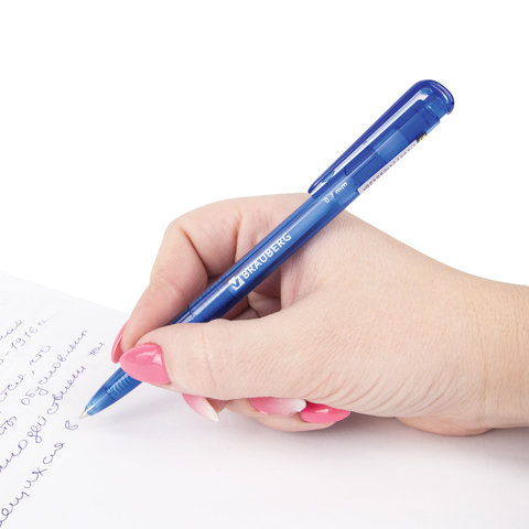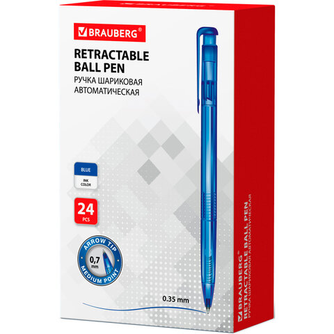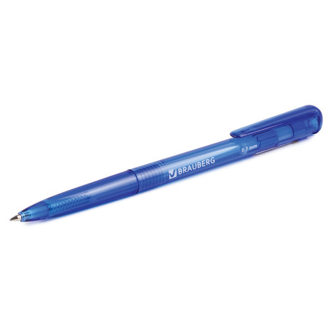 Ручка шариковая автоматическая BRAUBERG "OIL-BASE GRADE", СИНЯЯ, корпус ассорти, пишущий узел 0,5 мм, линия письма 0,3 мм, 144501