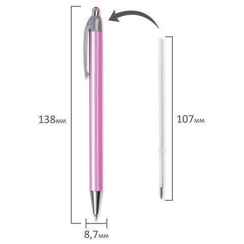 Имеет круглый корпус и стандартный наконечник. Укомплектована стержнем синего цвета длиной 107 мм. Диаметр пишущего узла, равный 0,5 мм, создает линию письма, равную 0,3 мм. Поставляется в нескольких вариантах цвета корпуса (без возможности выбора).