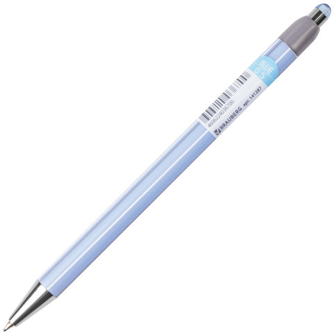 Ручка шариковая автоматическая BRAUBERG "OIL-BASE GRADE", СИНЯЯ, корпус ассорти, пишущий узел 0,5 мм, линия письма 0,3 мм, 144501