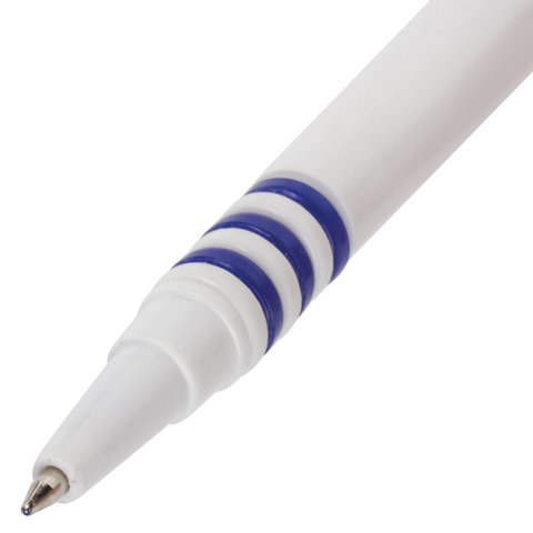 Ручка шариковая настольная BRAUBERG "Стенд-Пен", СИНЯЯ, пружинка, корпус серебристый, линия письма 0,5 мм, 142164
