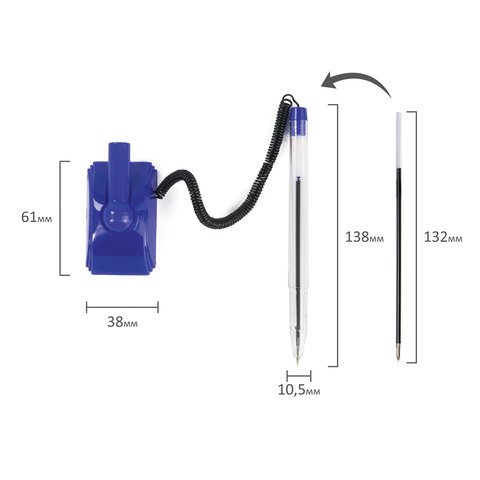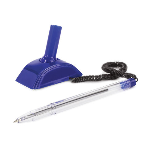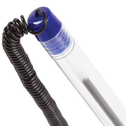 Ручка шариковая настольная BRAUBERG "Стенд-Пен", СИНЯЯ, пружинка, корпус белый/синий, линия письма 0,5 мм, 141353